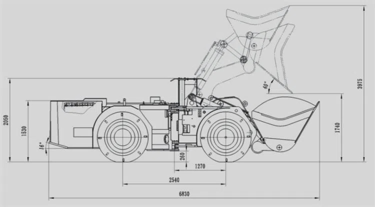 Дизельный ПДМ грузоподъемностью 4 тонны. Он приводится в движение двигателем DEUTZ BF4L914, повышает производительность и улучшает работу подземных туннелей, а также эффективно снижает уровень загрязнения.